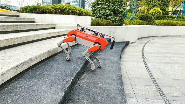 现场实测中,2.0版本“启明”智能机器导盲犬能快速上下台阶。 记者 宋德平 摄