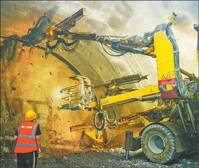 新渝万高铁长岭岗隧道应用三臂凿岩台车等机械化设备进行施工。以上图片均为任达禹摄(人民视觉)