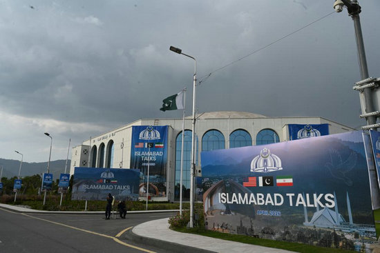 美国和伊朗代表团11日在巴基斯坦首都伊斯兰堡举行谈判。这是4月11日在巴基斯坦首都伊斯兰堡拍摄的美伊谈判新闻中心。新华社发(艾哈迈德·卡迈勒摄)