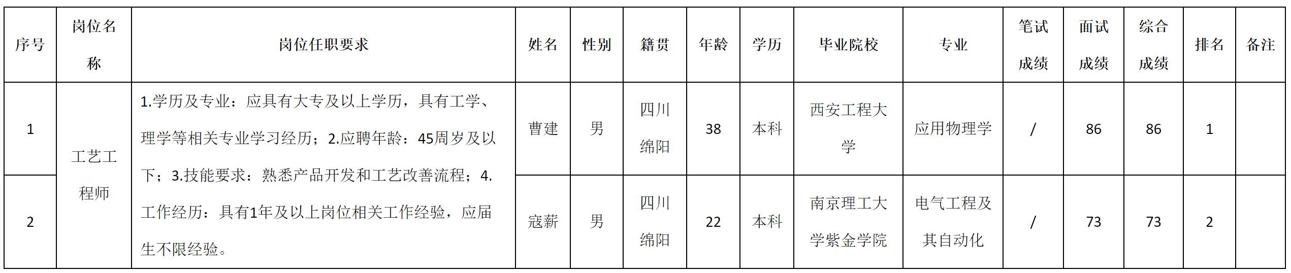 根据四川九华光子通信技术有限公司发布的招聘公告及招聘相关规定,现将测试成绩予以公示。