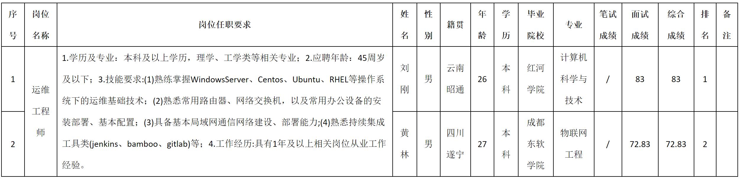 根据四川九强通信科技有限公司发布的招聘公告及招聘相关规定,现将测试成绩予以公示。