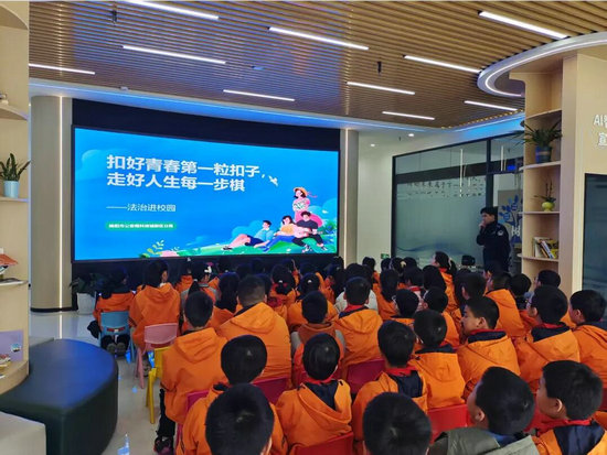 绵阳新闻网讯 为了落实立德树人根本任务,强化校园法治与安全教育,引导学生树立规则意识、提升自我保护能力,近日,绵阳科技城新区玉泉路小学组织五年级全体学生走进新区校安联盟基地,开展了以“法治护航成长 安全筑梦未来”为主题的法治教育沉浸式实践活动。
