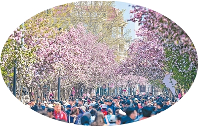 近日,第四届五大道海棠花节举办,推出6大主题板块、123场演出及26处主题展陈,为明媚春色再添意趣,吸引不少游客前来探寻春日美景。清明假期,五大道的大理道上人流如织,层层叠叠的海棠花海下,市民与游客穿行其间,举起相机定格满城春色。