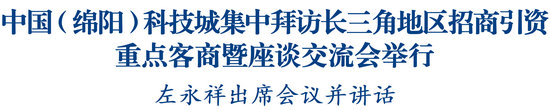绵阳新闻网讯 4月15日,中国(绵阳)科技城集中拜访长三角地区招商引资重点客商暨座谈交流会在上海举行。省委常委、市委书记左永祥,省经济合作局党组书记、局长吴晓曦出席会议并讲话。