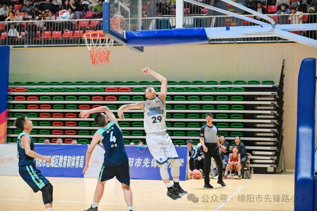 4月12日,四川省第六届“贡嘎杯”青少年校园体育超级联赛篮球小学男子组半决赛G2在涪城区体育馆举行。绵阳市先锋路小学坐镇主场,迎战来自马尔康市的卓克基中心校。经过四节激烈鏖战,先锋路小学以86:77战胜对手,在主场观众如潮的助威声中,拿下关键胜利!
