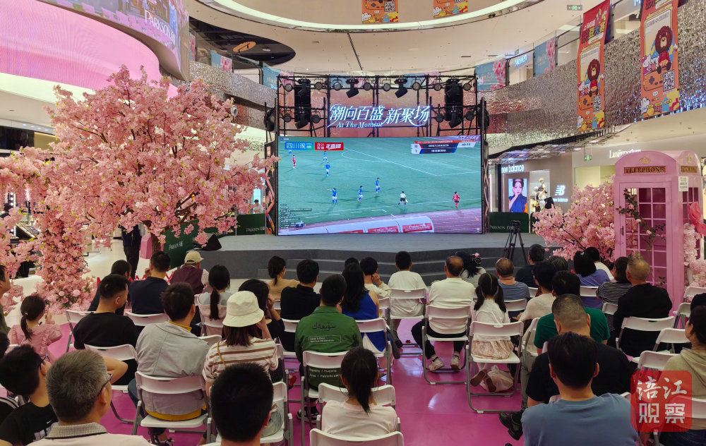 新投百盛作为我市第二观赛点,比赛还没正式开始,就吸引了大量市民守候,比赛观战现场氛围良好。“今天没去成现场还是很遗憾,但是和家人逛商场、在第二观赛点给咱们绵阳队‘云助威’,也是支持的方式,期待绵阳队打出水平。”市民王先生表示。
