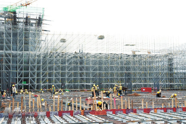 “现在正在进行主厂房顶层结构施工,总体进度已完成85%。”项目施工方中建八局一公司项目经理丁全站介绍,为全面保障项目建设进度,他们从组织、人力、物料、机械等方面做足了准备,将项目科学划分为60个施工段,实行平行流水作业,24小时三班倒。高峰期每天有近4000名工人、300台大型机械同时作业。