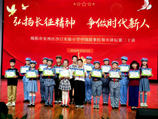 绵阳新闻网讯 为了弘扬长征精神,厚植家国情怀,4月17日下午,安州区沙汀实验小学在学术厅举办了以“弘扬长征精神 争做时代新人”为主题的第二十期“红领巾讲坛”长征故事展演活动。该校党总支书记魏忻、校长高晓庆等校领导及师生代表共同参与,现场气氛庄重热烈。
