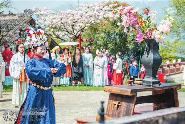 “三月三,朝圌山”。作为当地经典民俗活动,今年,窦圌山景区进一步优化活动内容,以汉服为纽带、非遗为载体、体验为核心,让传统民俗焕发新活力,为游客打造了高品质春日文旅体验。据景区工作人员介绍,活动当天游客量远超平日。(记者 陈元松)