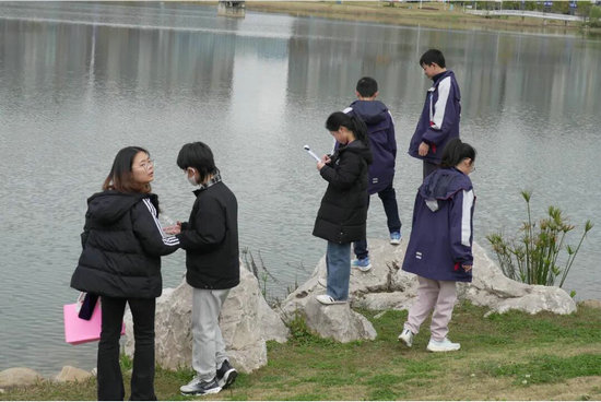 在实验环节结束后,为进一步探寻金西湖水质成因,全面掌握湖泊生态特征与管理现状,完善项目式学习闭环,学校积极联动金家林社区,搭建校社协同育人桥梁,邀请社区负责人亲临金西湖畔,与师生面对面交流答疑,共同开启一堂生动鲜活的户外实践课堂。