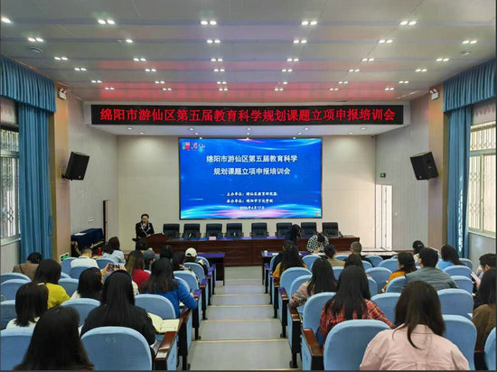 绵阳新闻网讯 为了深入贯彻落实《绵阳市游仙区教育和体育局关于开展第五届教育科学规划课题立项工作的通知》要求,高质量推进全区教育科学规划课题申报工作有序开展,全面提升教师的科研能力,4月17日,由游仙区教育研究室主办的游仙区第五届教育科学规划课题立项申报培训会在万达学校顺利举行。全区中小学分管教科研副校长、教科室主任、拟申报课题负责人及主研人员等百余人参加了此次培训。
