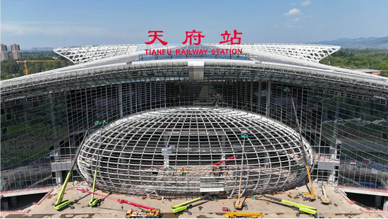 作为成渝地区双城经济圈重点交通工程,天府站位于四川天府新区成都直管区,是成渝地区双城经济圈核心铁路枢纽项目,由中铁建设集团承建。