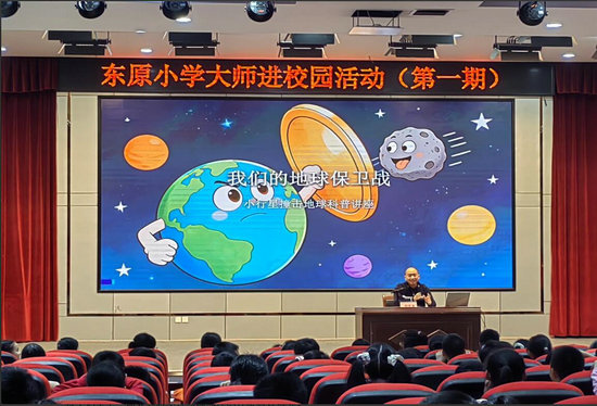 讲座伊始,胡茂海老师以极具感染力的生动语言,带领同学们踏入一段穿越星际的奇妙旅程。他从行星起源开讲,将晦涩的天文知识转化为通俗易懂的语言,配合精美的动画视频演示,把小行星的轨道运行规律、撞击地球的概率测算,以及科学家如何构建近地天体监测网络等专业内容,拆解成一个个妙趣横生的知识点,牢牢抓住了孩子们的好奇心,现场不时响起惊叹声与欢呼声,探索宇宙的种子在一颗颗童心中悄然萌发。