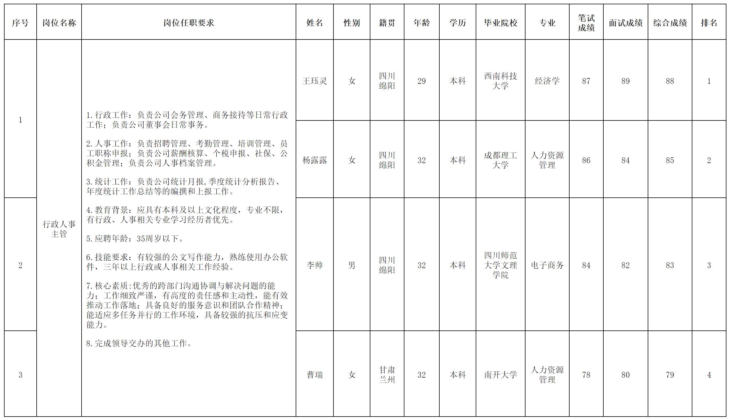 根据四川长虹电子科技有限公司发布的招聘公告及招聘相关规定,经笔试、面试等程序,现将测试成绩予以公示。