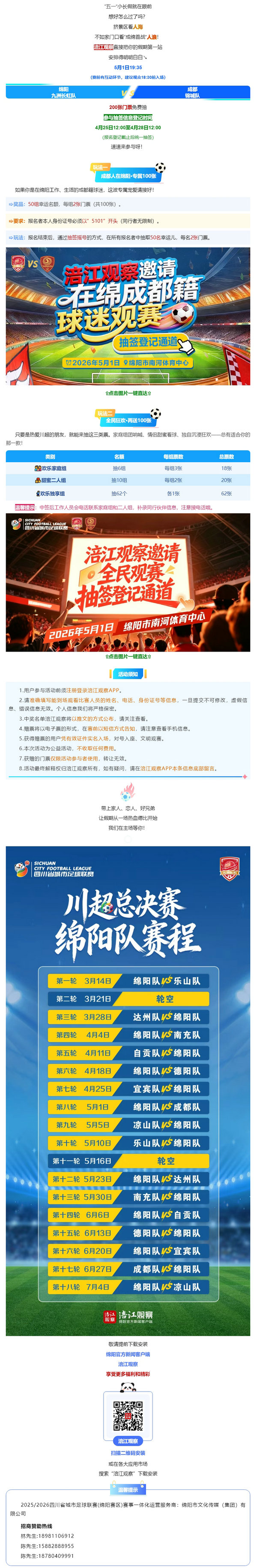 5月1日绵阳VS成都!200张免费门票,抽签登记通道开启→