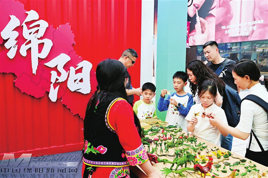 此次推介活动中,绵阳还将非遗技艺与老字号美食、文旅好物深度融合,让传统文化更接地气、更具烟火气。江油展区内,江油肥肠、太白酥、麻饼等特色美食香气扑鼻、令人垂涎;梓潼、平武展区里,大熊猫玩偶、创意冰箱贴等文创产品清新精致、独具特色。现场咨询、选购的游客络绎不绝,全方位展现了绵阳深厚的历史人文底蕴、丰富的文旅产品,以及繁荣兴旺的文旅商全产业链生态。