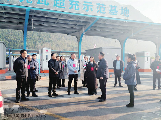 市县人大代表集中视察北川元启星光重卡兆瓦超充站建设。 北川县委宣传部供图