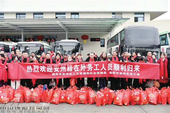 2月9日,在外省务工的农民工张大哥拖着行李箱走出安州区客运站,一眼就看到了“安州区在外务工人员返乡服务站”的红色横幅。志愿者小陈快步迎上来,递上一杯热姜茶,接过他手中的行李:“大叔,专车马上出发,直接送到镇上的!”张大哥喝了一口热茶,眼眶有些湿润:“在外面奔波一年,最盼的就是回家这一刻。没想到家乡想得这么周到,出站就有人接,还有专车送到家门口。”