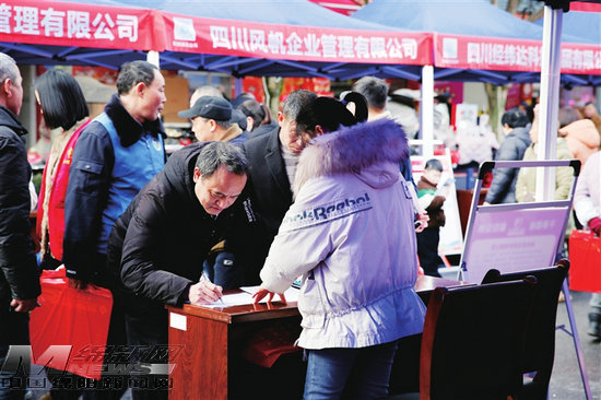农历新年正月初八,安州区秀水镇赶集日,一场“春风行动暨就业援助月”招聘会正在热闹举行。几十家企业摆开摊位,用工信息、薪资待遇一目了然,返乡农民工小王在招聘会现场转了一圈,在一家本地制造企业摊位前停了下来。“之前在广东也是做这个,月薪5000多元,还要租房。这家企业就在我们镇上,工资4500元,还能照顾老人小孩,划算!”小王当场填写了求职登记表。