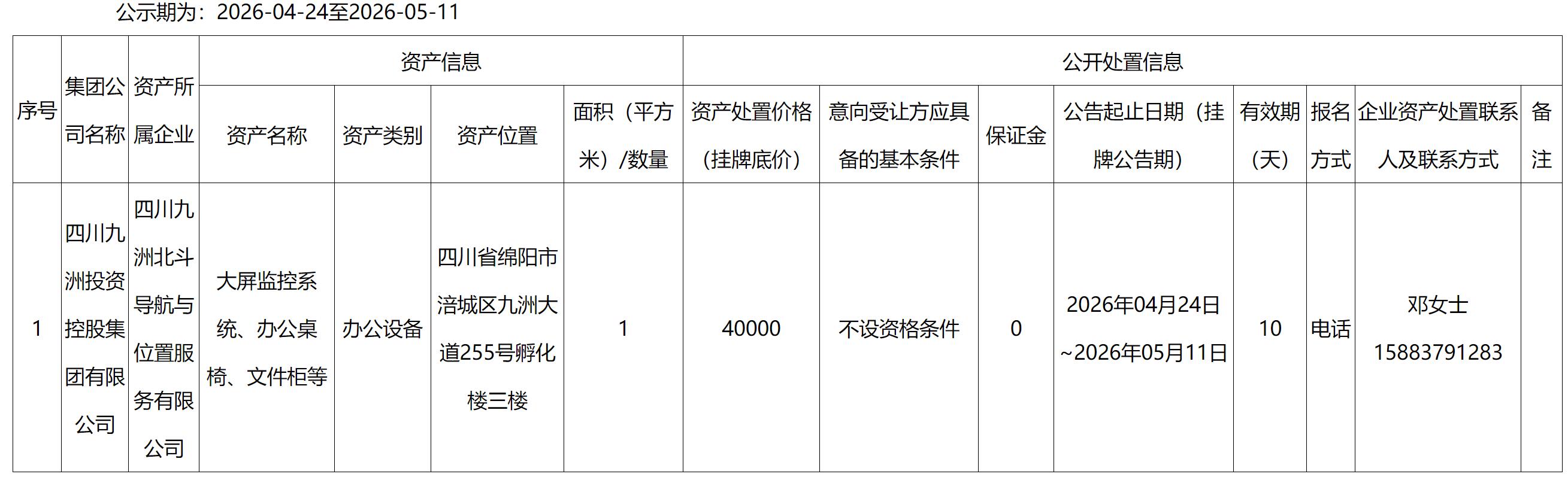 四川九洲北斗导航与位置服务有限公司资产处置公告