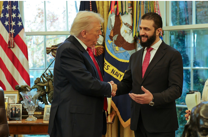 美国总统特朗普10日在白宫与到访的叙利亚政权领导人沙拉举行闭门会谈,后者成为1946年叙利亚独立以来首位访美的叙领导人。访问期间,美国宣布延长对叙利亚的制裁豁免,叙方则表示同意与美合作打击极端组织“伊斯兰国”。 [