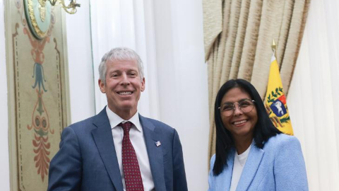 委内瑞拉代总统德尔西·罗德里格斯11日在加拉加斯总统府会见美国能源部长克里斯·赖特。[