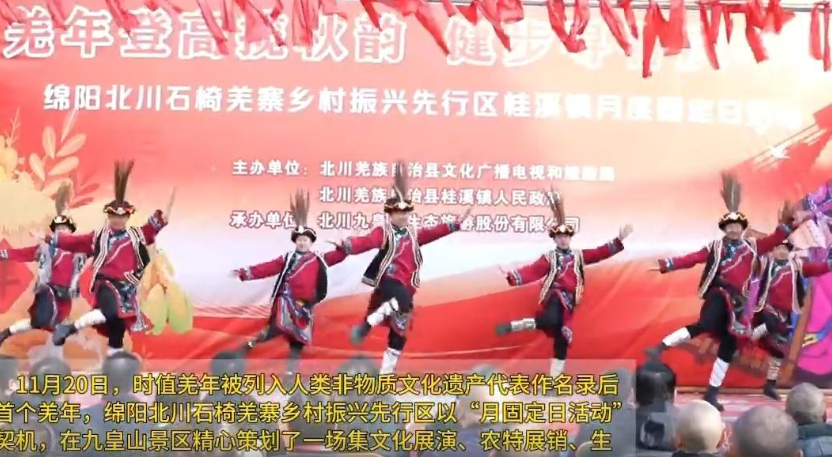 11月20日,在羌年被列入人类非物质文化遗产代表作名录后的首个羌年之际,绵阳北川石椅羌寨乡村振兴先行区以“月固定日活动”为契机,在九皇山景区举办了一场融合文化展演、农特展销与生态徒步的节庆盛宴,生动展现“产业兴、文化活、民生暖”的乡村振兴新貌。[
