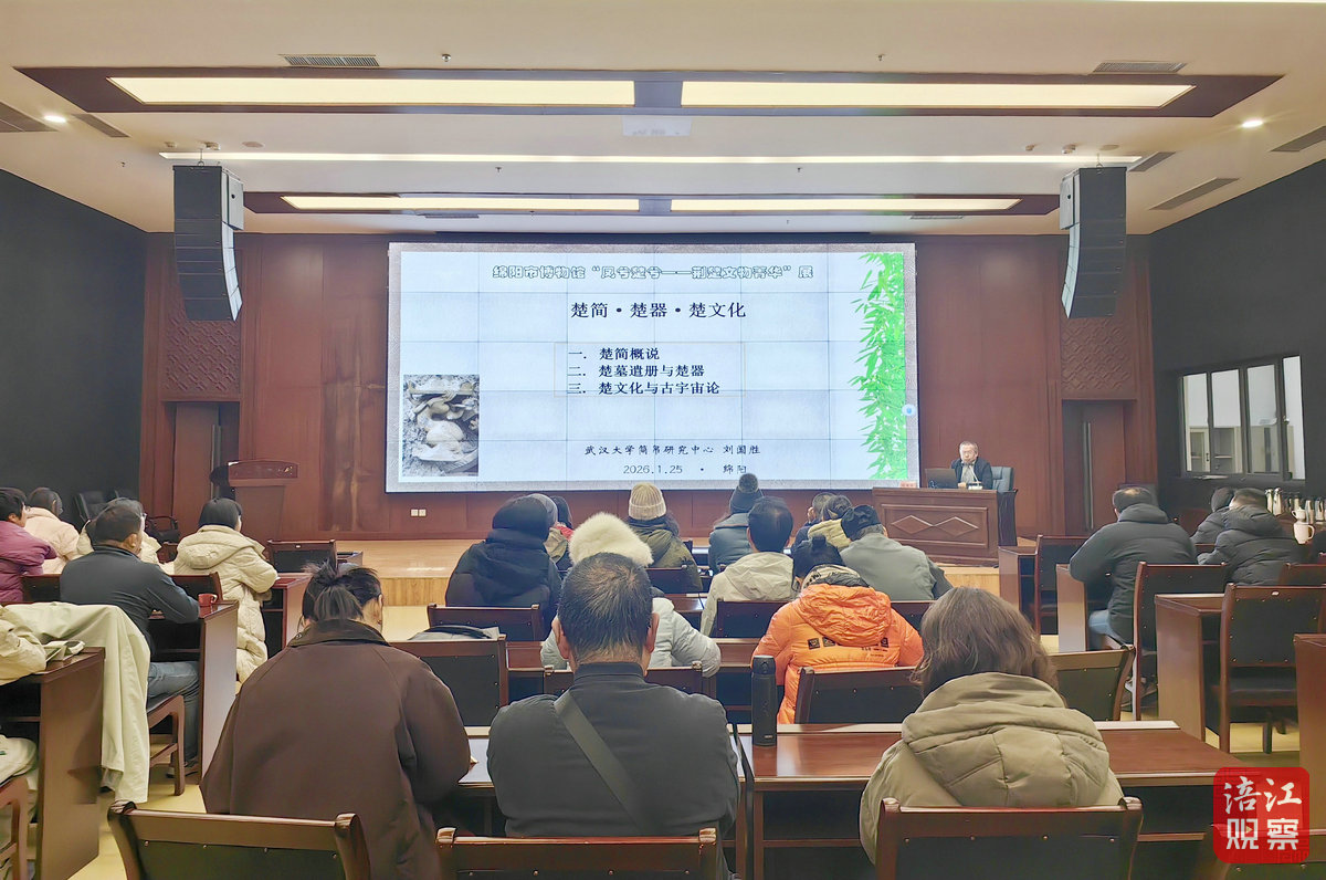 1月25日,武汉大学简帛研究中心教授、博士生导师刘国胜,应邀在绵阳市博物馆学术报告厅作《楚简·楚器·楚文化》专题讲座,带领观众走近绚烂多彩的楚文化世界。[