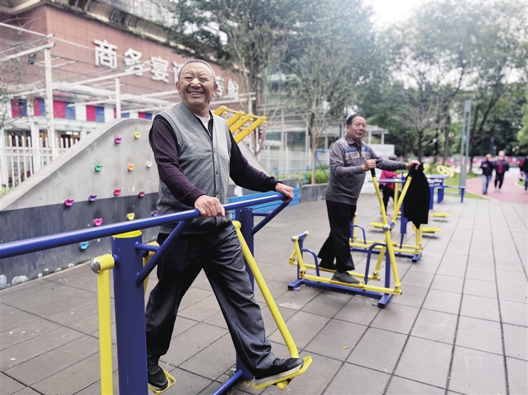 七十岁的李大爷,每天的晨练在离家一百多米的范围即可完成。从他居住的翠满庭小区(位于涪城区跃进北路)到小区旁口袋公园健身区,不过百步之遥。在过去,他从小区到五一广场锻炼,赶公交车需经过四站,耗时半小时。 [