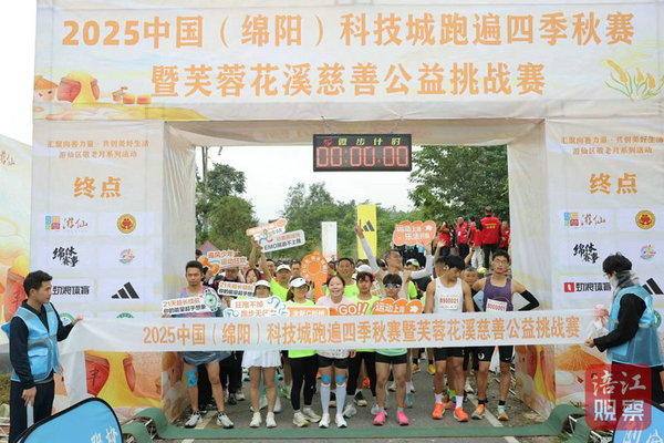 10月26日,2025中国(绵阳)科技城跑遍四季秋赛暨芙蓉花溪慈善公益挑战赛在游仙区新桥镇芙蓉花溪畔暖心开跑,800余名跑步爱好者齐聚现场,共同参与这场融合运动、健康与慈善的公益盛事。[