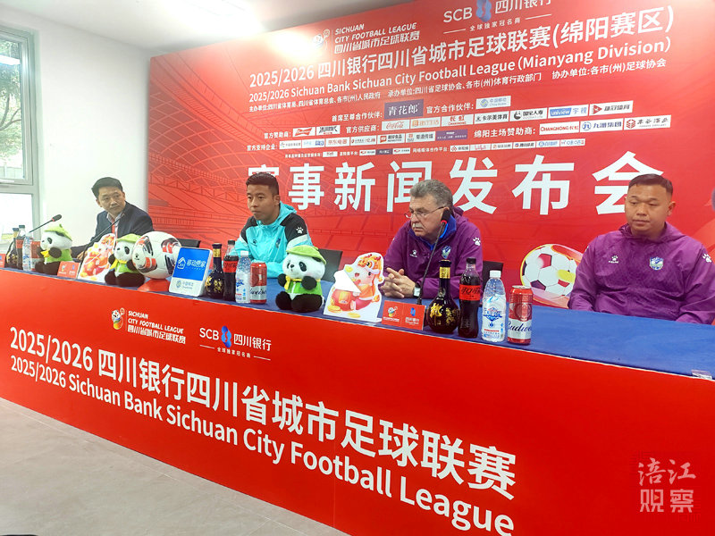 11月22日,2025/2026四川银行四川省城市足球联赛(绵阳赛区)收官之战赛前新闻发布会在三台县体育场新闻发布厅举行。绵阳九洲长虹队、阿坝州雪山雄鹰队的主教练及队员出席并接受媒体采访,双方围绕赛前准备情况以及球员状态进行了分享。[