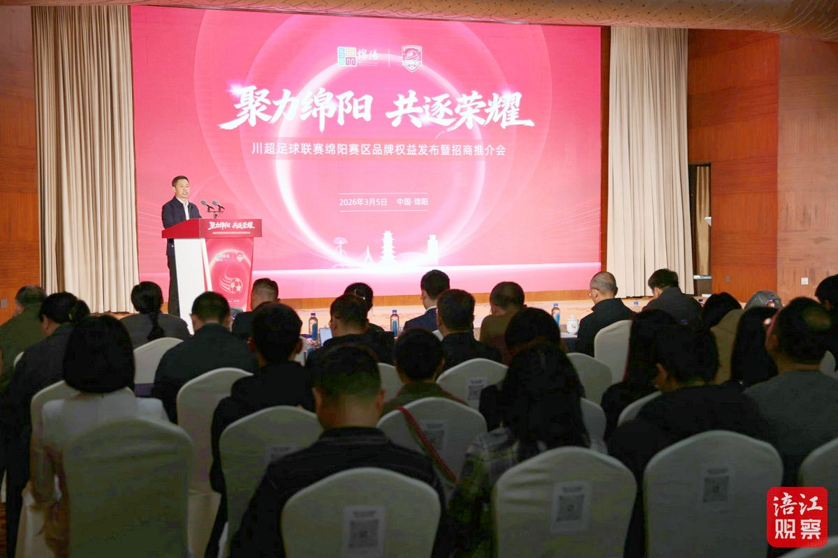 3月5日下午,富乐山九洲国际酒店西川厅座无虚席、气氛热烈,“聚力绵阳 共逐荣耀”川超足球联赛绵阳赛区品牌权益发布暨招商推介会在此举行。 [