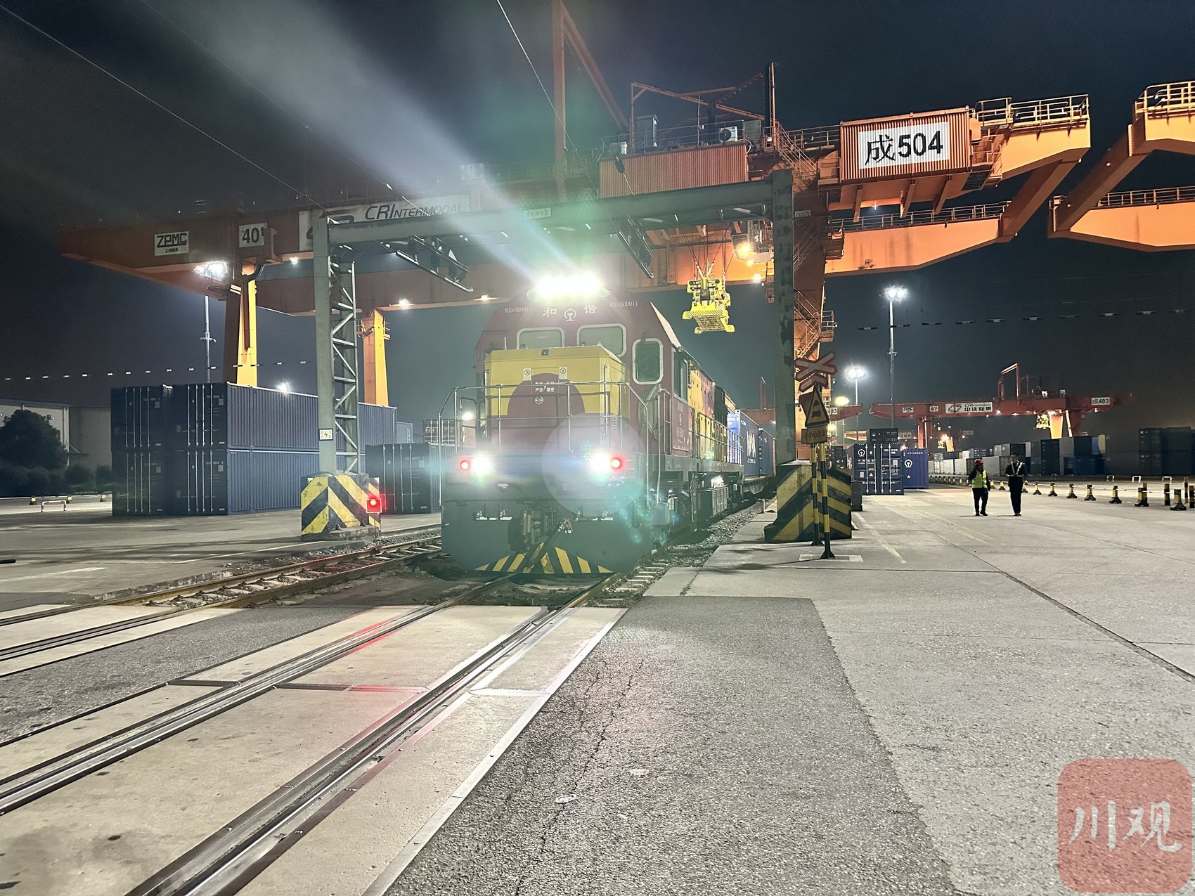 2月17日凌晨零时,农历丙午马年的钟声敲响,一声汽笛在成都国际铁路港回响。灯火通明的场站里,成都中欧班列农历新年第一趟班列缓缓驶出,终点是8000多公里外的白俄罗斯明斯克科里亚季奇。[